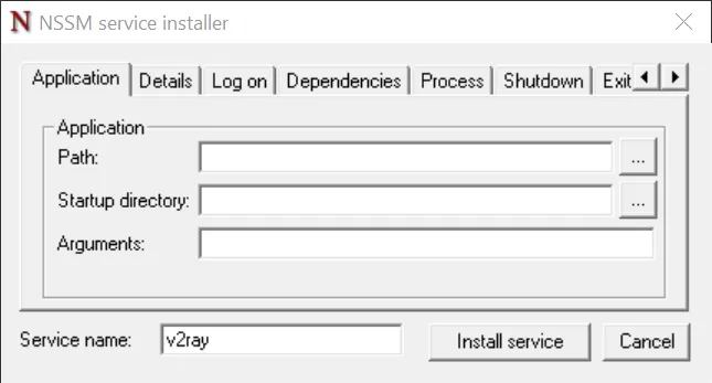 nssm install v2raynssm install service_name,这个service_name以后控制服务要经常输,所以最好不要太长,我这次安装的是v2ray,所以nssm install v2ray就可以- 以前都是