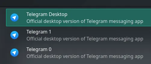 [Desktop Entry]Version=1.0Name=Telegram MyUsernameComment=Official desktop application for the Telegram messaging serviceTryExec=/opt/Telegram/TelegramExec=/opt/Telegram/Telegram -workdir /home/{{your_user}}/.local/share/TelegramDesktop/username -- %uIcon=telegramTerminal=falseStartupWMClass=TelegramDesktopType=ApplicationCategories=Network;InstantMessaging;Qt;MimeType=x-scheme-handler/tg;Keywords=tg;chat;im;messaging;messenger;sms;tdesktop;X-GNOME-UsesNotifications=trueX-Desktop-File-Install-Version=0.23执行一下,出现tg登录界面了