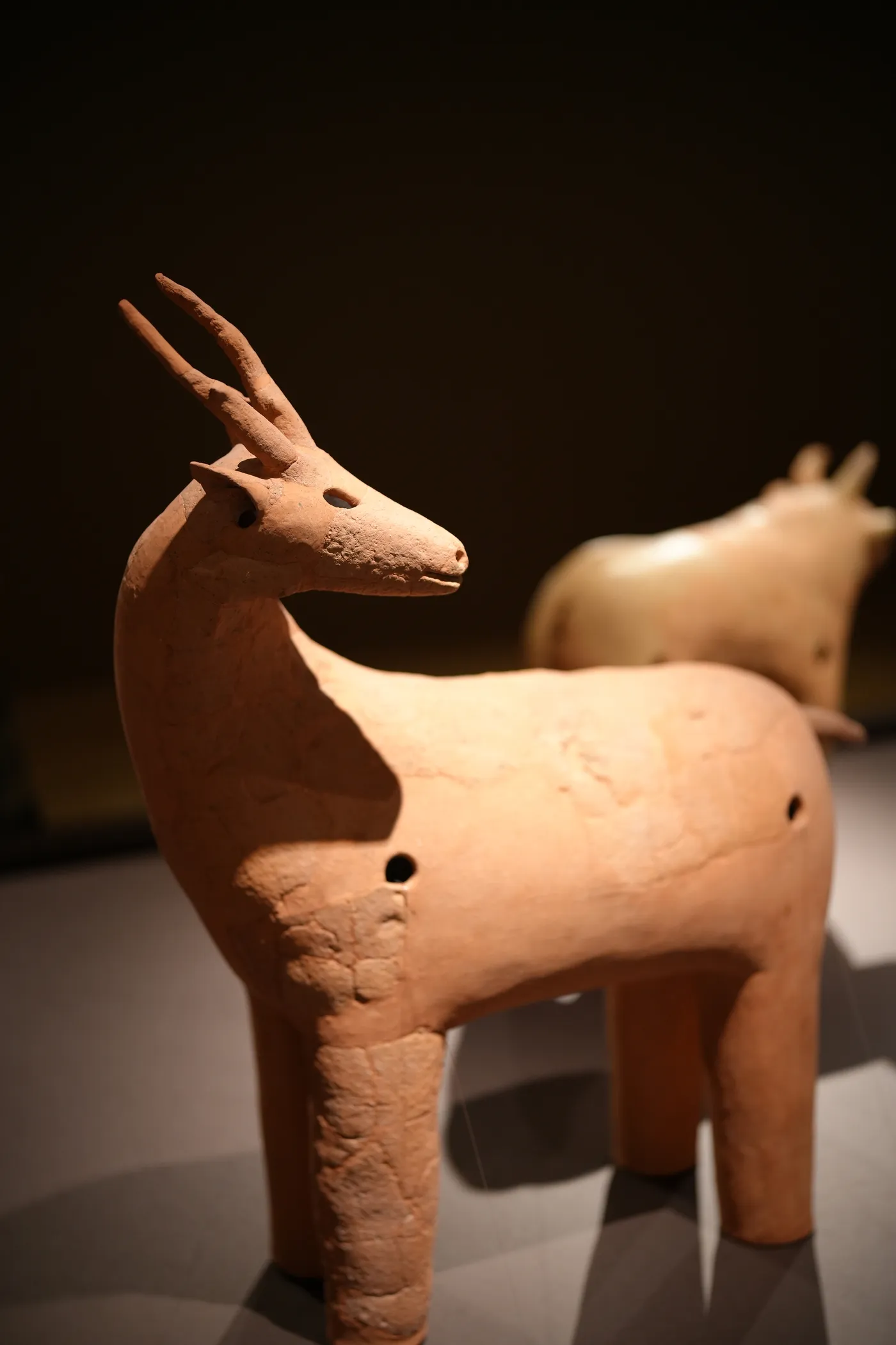 看板娘 看板兄弟,失散多年的五陶俑兄弟(其中一尊在美国)再次聚首,陶俑身后有类似 X 光投影的背景,布展蛮用心的