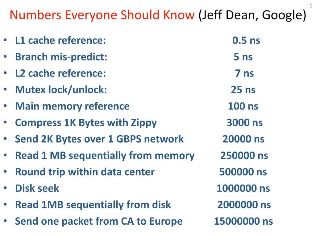 Jeaf Dean常说的各类存储的延迟数据,也是物理视角。