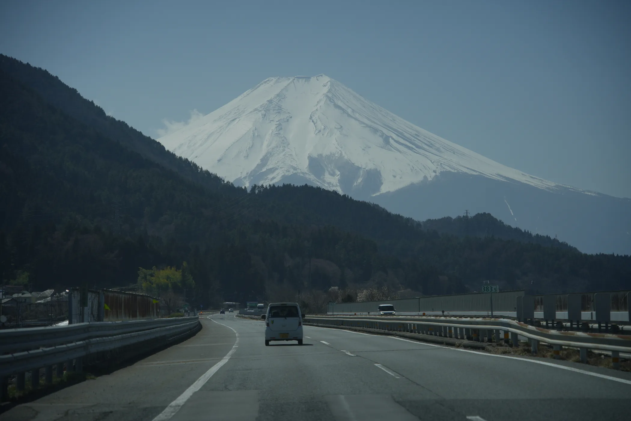 在高速上拐来拐去,突然,富士山就出现在眼前了