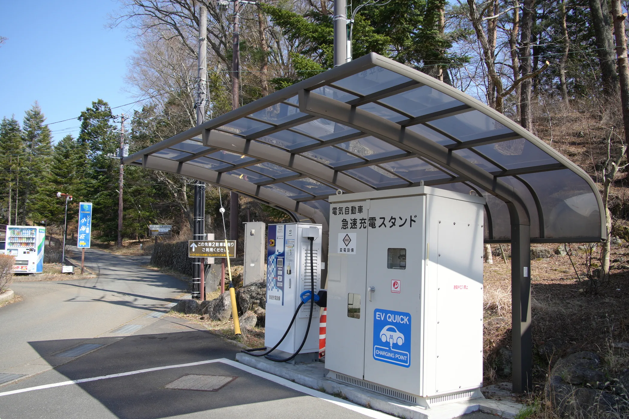 几十个车位,只有一个充电桩,电动车在日本还是不够普及