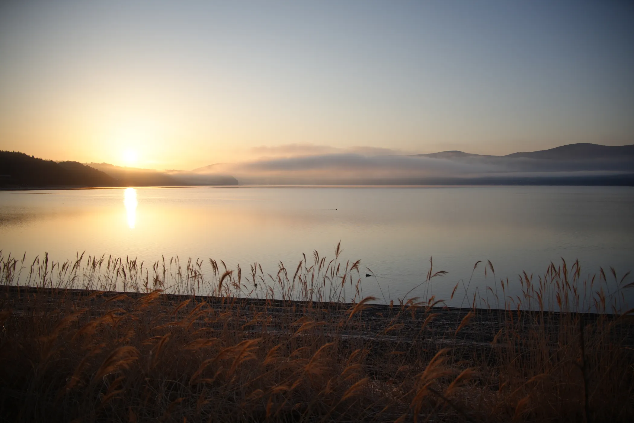 好久没见过朝阳,金色的阳光配上湖面、蒸腾起的薄雾,此番美景让我瞬间忘记昨晚的糟糕睡眠