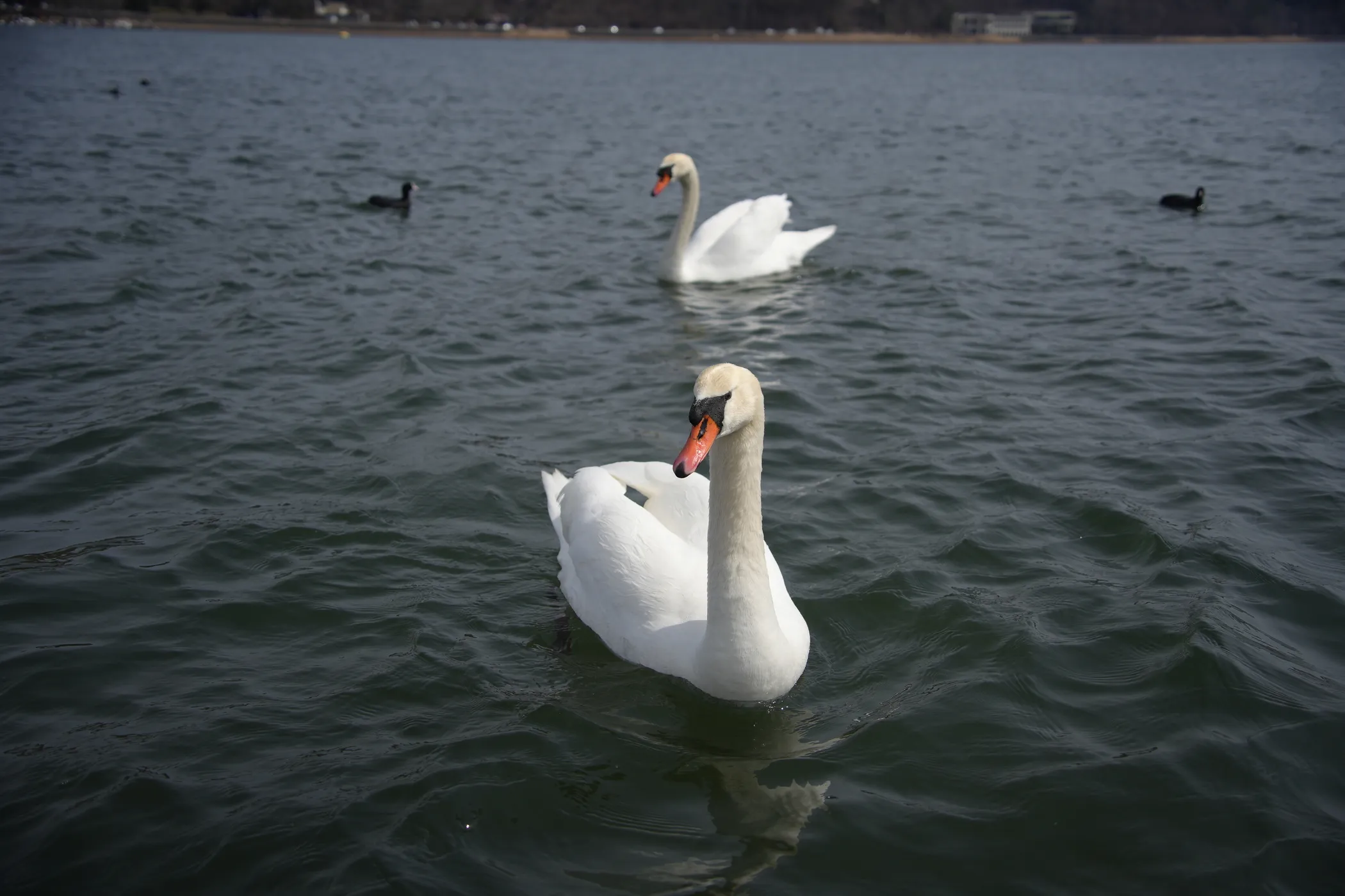 湖里有两只同步率超高的大鹅,感觉「曲颈向天歌」还蛮形象的